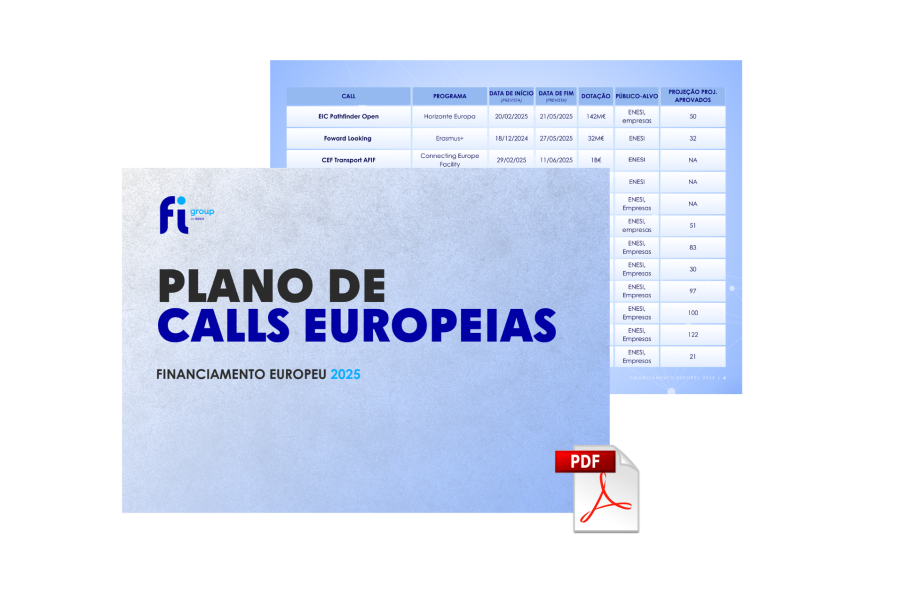 A FI Group tem uma presença forte a nível europeu, o que nos permite ter um entendimento profundo dos diferentes programas de financiamento da União Europeia, como o Horizonte Europa e demais programas geridos diretamente pela Comissão Europeia, o PRR (Plano de Recuperação e Resiliência) e os Programas Operacionais do Portugal 2030. Trabalhamos com as empresas para identificar as oportunidades mais adequadas aos seus projetos, estruturamos candidaturas competitivas e asseguramos um acompanhamento contínuo na execução dos projetos financiados.